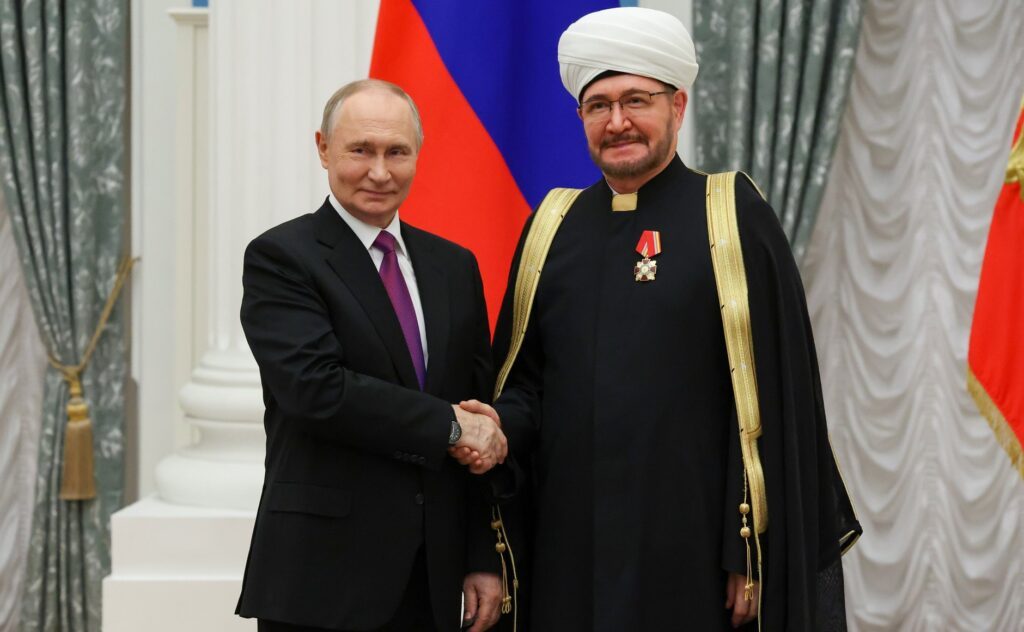 Президент России Владимир Путин наградил председателя Духовного управления мусульман Российской Федерации главного Муфтия Шейха Равиля Гайнутдина Орденом «За доблестный труд»